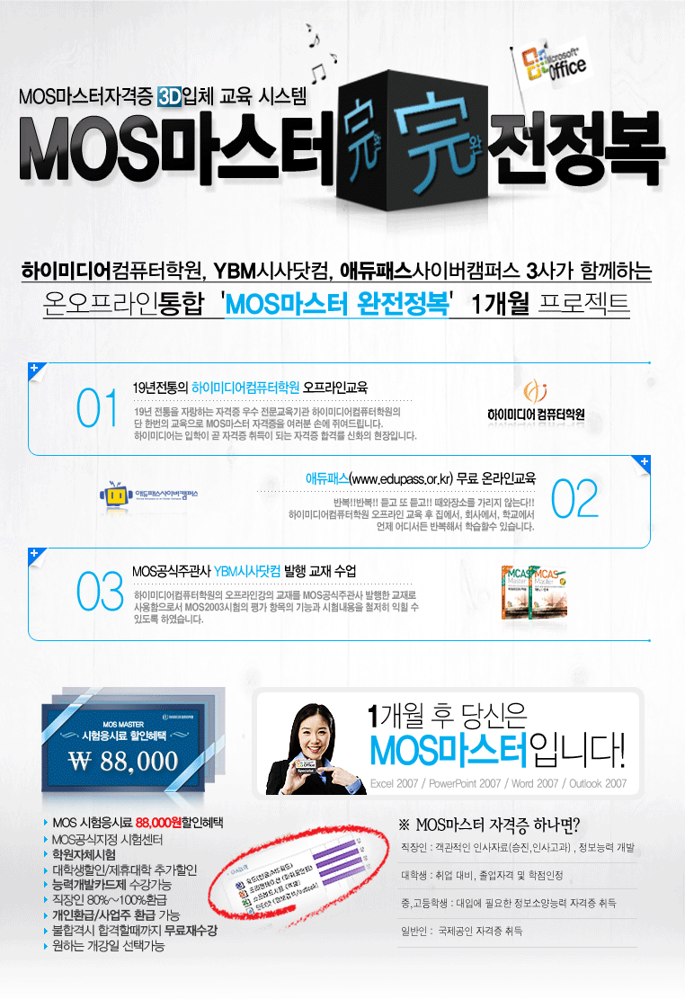 MOS(Microsoft Office Specialist) 2007 과정으로 Master 취득을 희망하시는 분들께 알려드립니다.