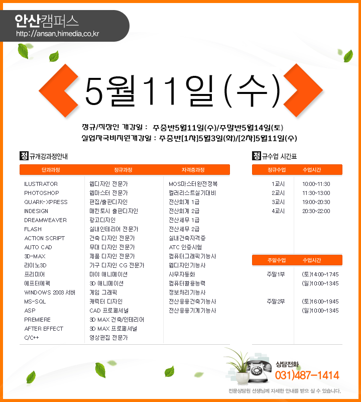 [정규개강]2011년 5월 안산캠퍼스 정규개강안내
